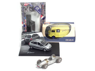 comprend : JEEP 'USA', CITROEN 1200 kg 'MICHELIN', XSARA 'PICASSO' & CISITALIA (état 'D') - on y retrouve les marques : SOLIDO, EDITIONS ATLAS, NOREV & MERCURY - 2 voitures avec boîte