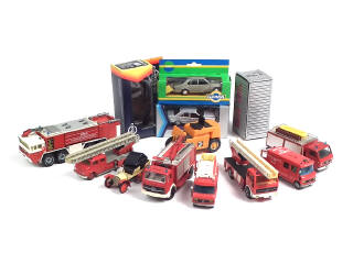 DIVERS (ALLEMAGNE) Ensemble de 7 véhicules de pompiers, 3 voitures & un chariot à fourche