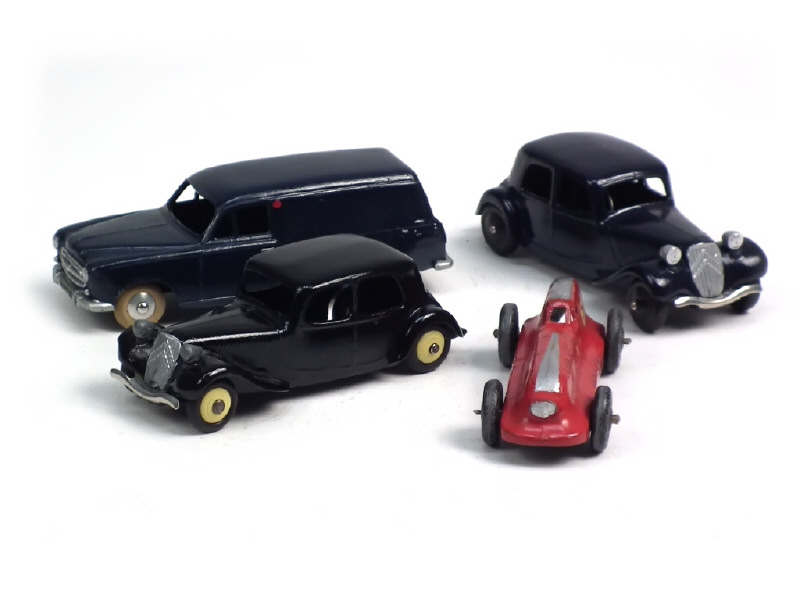 comprend : CITROEN TRACTION 11 BL (2 exemplaires), PEUGEOT 403 familiale (transformée) & HOTCHKISS de course (en grande partie retouchée) - quelques petits manques