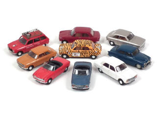 comprend les modèles : 204 & 304 - on y joint une SIMCA 9 ARONDE de la marque DUVI - quelques petits manques & pièces à recoller