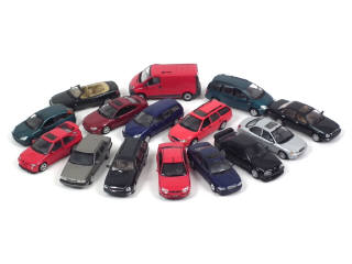 miniatures reproduisant les modèles : FORD (9 exemplaires différents), OPEL (2 exemplaires différents), PEUGEOT & VOLVO (3 exemplaires différents) - petits manques
