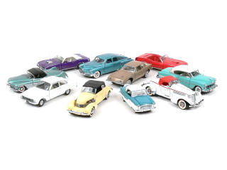 échelle 1/24ème - comprend : CORD 812 1937, PLYMOUTH HEMI COUDA hard top 1970, AUBURN SPEEDSTER 851 1935, FORD FALCONE 1960, NSH METROPOLITAN 1956, TUCKER 1948, PLYMOUTH HEMI COUDA cabriolet 1970, BUICK LESABRE 1951, STUDEBAKER AVANTI 1963 & CHEVROLET BEL AIR coupé 1954 - avec certificats d'authenticité, un sachet de gants, accessoire & notices