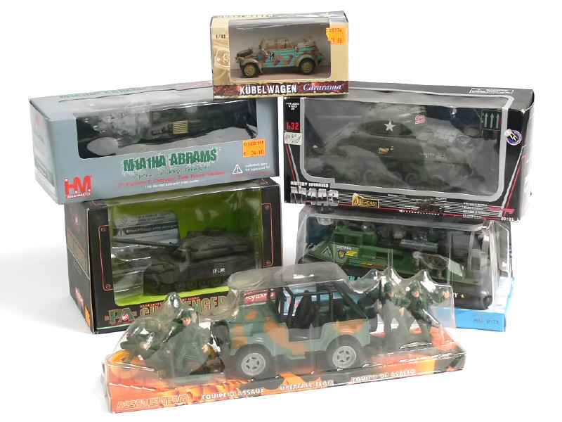 DIVERS Ensemble de 3 chars, 2 véhicules, une moto, un hovercraft & 6 figurines