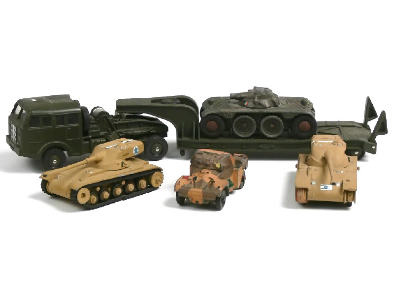 un pneu de remorque coupé, un autre incomplet & pneu de roue de secours craquelé - on y joint 2 chars AMX, un EBR & un AML PANHARD en états de 'F' à 'R'