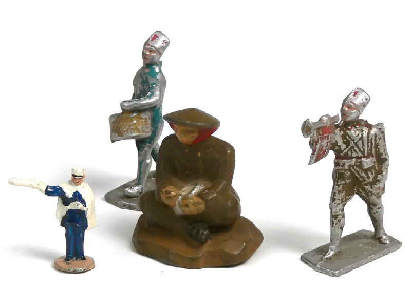 réalisation en composition - hauteur : 6 cm (vraisemblablement réalisé par JRD) - on y joint 2 soldats en aluminium (en état 'E) & un policier faisant la circulation (de marque QUIRALU)