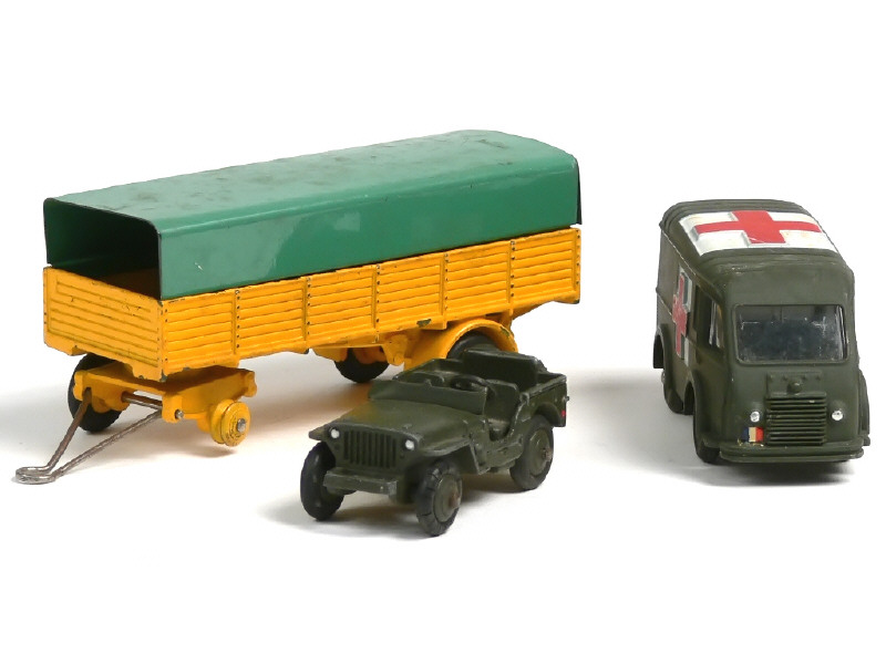 carrosserie légèrement encrassée - on y joint une JEEP référence 80B en état 'F' & une remorque bâchée référence 70 (manque un pneu, en état 'D')