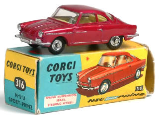 CORGI TOYS (GB) 316 N.S.U. Sports PRINZ rose métal