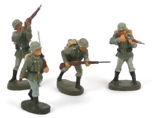 ELASTOLIN (ALLEMAGNE) Ensemble de 4 soldats de l'armée allemande gris armée