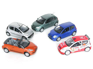 miniatures reproduisant les modèles : C3, C1, C2 Super 1600, C3 PLURIEL 2003 & C2 2003 (manque antenne) - on y retrouve les marques : NOREV, SOLIDO & UNIVERSAL HOBBIES