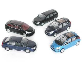 miniatures reproduisant les modèles : C5 berline & break, C AIR LOUNGE, C4 PICASSO berline & break