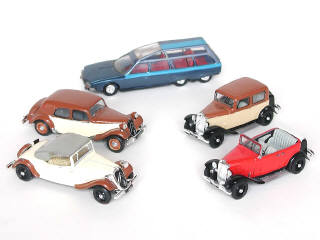 miniatures reproduisant les modèles : 8CV ROSALIE berline & cabriolet 1933, 11CV roadster 1939, 11CV 1953 & CX - on y retrouve les marques : UNIVERSAL HOBBIES & SOLIDO