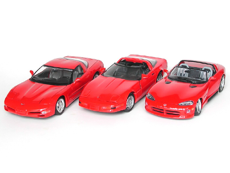 échelle 1/18ème - miniatures reproduisant les modèles : DODGE VIPER, CHEVROLET CORVETTE ZR1 1992 & CHEVROLET CORVETTE C5 1997 - on y retrouve les marques : MAISTO & BBURAGO
