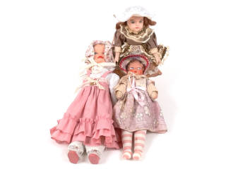 hauteur 26 cm - années 30/40 - tête en carton & mains en composition - yeux fixes bleus - bouche fermée - vêtements d'origine - TRES RARE !