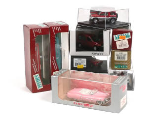 miniatures reproduisant les modèles : RENAULT, PEUGEOT, CADILLAC, CHEVROLET, FERRARI, LANCIA, AUDI & MITSUBISHI - une boite en état 'c'