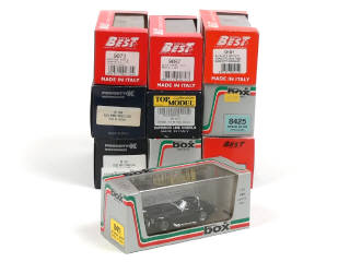 miniatures reproduisant les modèles : PORSCHE (2 exemplaires différents), AC, ALFA ROMEO (3 exemplaires différents), FIAT & FERRARI (3 exemplaires différents) - on y retrouve les marques : MODEL BEST, MODEL BOX, TOP MODEL & PROGETTO K