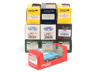 miniatures reproduisant les modèles : GORDINI, FERRARI (5 exemplaires différents), FIAT, ALFA ROMEO (2 exemplaires différents) & JAGUAR - on y retrouve les marques : TOP MODEL, PROGETTO K, BEST MODEL & BANG