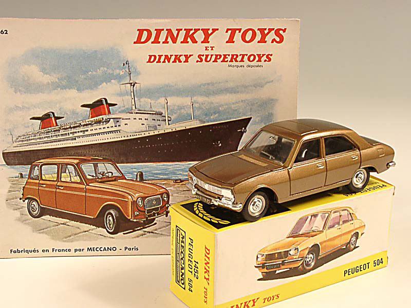 DINKY TOYS (FRANCE) 1452 PEUGEOT 504 (made in SPAIN) bronze métal
