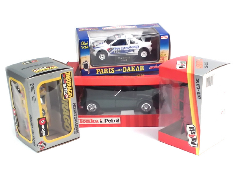 différentes échelles - comprend : PEUGEOT 205 SAFARI, 405 TURBO 16, AUTOBIANCHI Y10 & MGA - on y retrouve les marques : POLISTIL, BBURAGO, MAJORETTE & TONKA POLISTIL