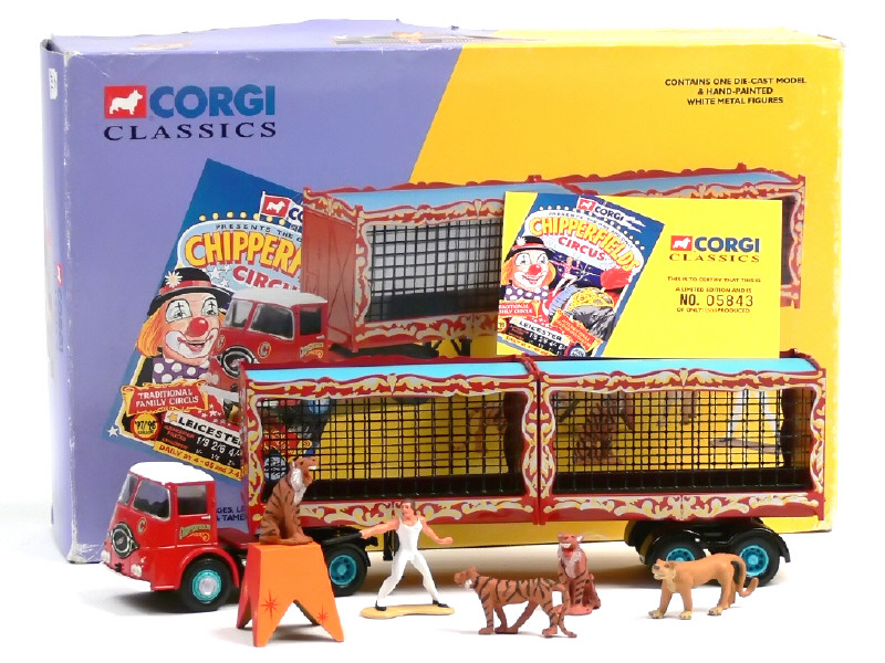 CORGI TOYS (GB) 11201 ERF KV Semi-remorque porte-cages à fauves 'CHIPPERFIELD'S CIRCUS' rouge & bleu ciel
