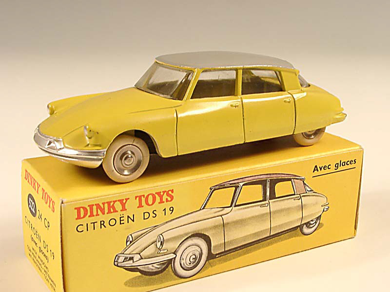 DINKY TOYS (FRANCE) 522 CITROËN DS 19 (version avec vitres & jantes concaves) jaune d'or, toit gris clair