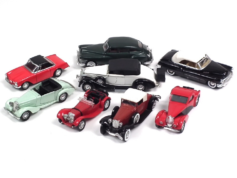 miniatures reproduisant les modèles : BUICK, BUGATTI, CHRYSLER, FACEL VEGA, CORD, JAGUAR, PACKARD & TALBOT - avec manques
