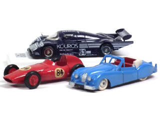 comprend : MERCEDES 'KOUROS' (en boîte état 'c', aileron arrière recollé avec support non d'origine), JAGUAR XK 140 (2 détails de peinture ajoutés & petites retouches) & FERRARI SUPER SQUALO (état 'C') - on y retrouve notamment les marques : QUIRALU & MERCURY