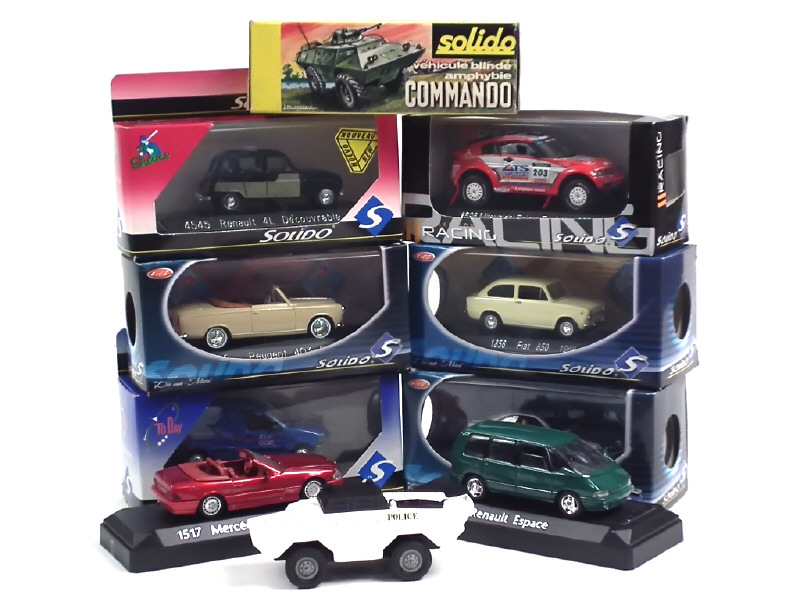 SOLIDO (FRANCE) Ensemble de 8 voitures & un engin blindé