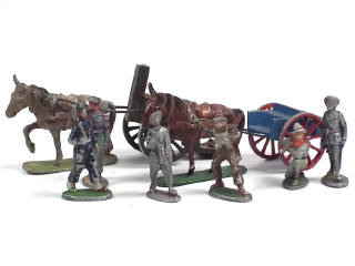 QUIRALU (FRANCE) Ensemble de 5 soldats, un cow-boy, 2 chevaux, une cuisine roulante & une charette