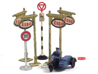 états de 'B' à 'E' - on y joint 4 panneaux 'ESSO' en métal & 2 panneaux signalisation en plastique (dont un avec socle manquant) de marques inderterminées