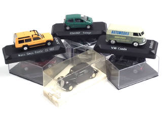 comprend : VOLKSWAGEN COMBI 'AUTOMOBILE MINIATURE', CITROEN TRACTION 15 CV, LANCIA DELTA HF INTEGRALE, MATRA SIMCA RANCHO, RENAULT, ESPACE, TWINGO & MEGANE SCENIC - une boîte salie