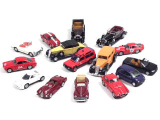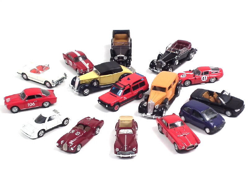états de 'A' à 'C' - miniatures reproduisant notamment les modèles : HORCH, PEUGEOT, ALFA ROMEO (3 exemplaires), FERRARI, PACKARD (2 exemplaires), PEUGEOT, RENAULT, MAYBACH, CHEVROLET, TALBOT MATRA & LANCIA - on y retrouve les marques : MINICHAMPS, SOLIDO, MODEL BEST, BANG, DETAIL CARS, ART MODEL, MATCHBOX & TOP MODEL - petits manques & parties à recoller
