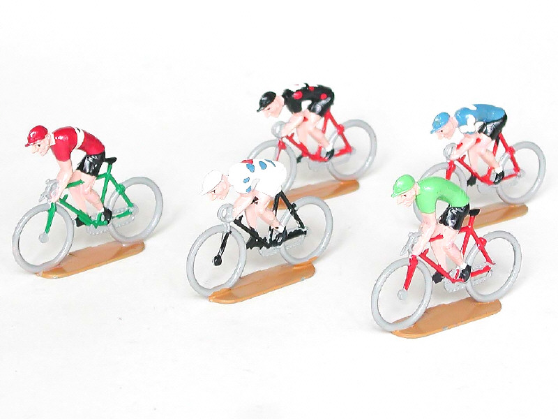 comprend 3 rouleurs & 2 cyclistes en danseuse (dont un maillot vert) - version tout métal sur socle