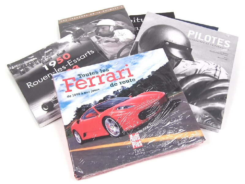 comprend notamment les titres : JEAN ALESI, STRILING MOSS, PILOTES LEGENDAIRES DE LA FORMULE 1, ROUEN-LES ESSARTS & TOUTES LES FERRARI DE ROUTE - on y retrouve notamment les éditions : NORMANDIE, TANA & SIRENE - 5 exemplaires sous film plastique jamais ouvert