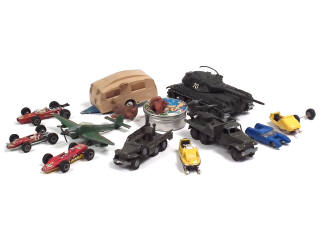 états de 'E' à 'F' - miniatures reproduisant notamment les modèles : AMX 30, JUNKER JU87, GMC, DODGE & LOTUS - on y joint une ambulance en tôle (longueur 22 cm non présentée sur la photo) - on y retrouve notamment les marques : FRANCE JOUETS, SOLIDO, CHAMPION, PENNY, MAJORETTE & M.F