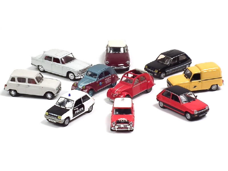 miniatures reproduisant les modèles : CITROEN (3 exemplaires différents) MORRIS, PEUGEOT & RENAULT (5 exemplaires différents) - quelques petits manques