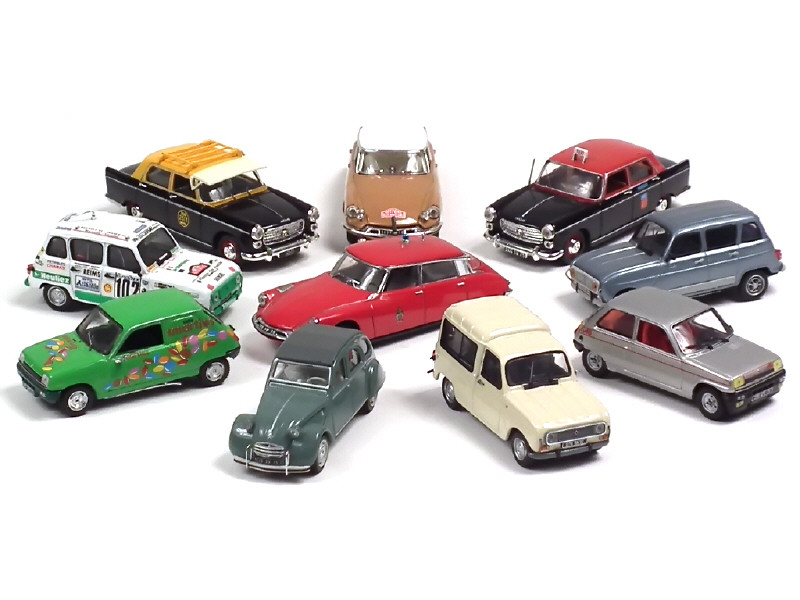 miniatures reproduisant les modèles : CITROEN (3 exemplaires différents), PEUGEOT (2 exemplaires différents) & RENAULT (5 exemplaires différents) - quelques petits manques