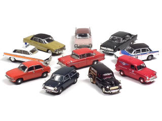 collection 'VANGUARDS' - miniatures reproduisant notamment les modèles : AUSTIN (2 exemplaires différents), FORD, MORRIS, ROVER (2 exemplaires différents), TRIUMPH & VAUXHALL (2 exemplaires différents) - quelques petits manques