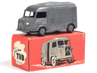 plancher sans inscription 'MINIALUXE' - moteur à friction (fonctionne, freiné par le frottement des pneus) - légère déformation de la carrosserie (principalement du toit) - un phare mal positionné d'origine - avec boîte promotionnelle 'J'AI MON TUB' (très légèrement tachée)