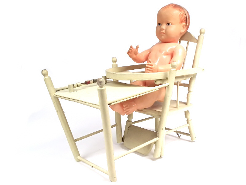 hauteur 56 cm - crâne & côté gauche du corps à recoller - on y joint une chaise en bois pour bébé en état 'R' hauteur 82 cm