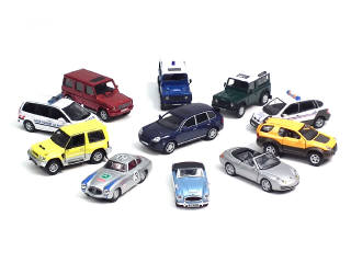 miniatures reproduisant les modèles : BMW (2 exemplaires différents), AUSTIN HEALEY, LEXUS, ISUZU, LAND ROVER (3 exemplaires diférents), MERCEDES (2 exemplaires différents), MITSUBISHI, PEUGEOT (2 exemplaires), PORSCHE (3 exemplaires) & RENAULT