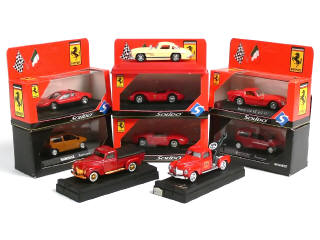 miniatures reproduisant les modèles : DODGE (2 exemplaires différents), FERRARI (4 exemplaires différents), MERCEDES & RENAULT (2 TWINGO différentes)