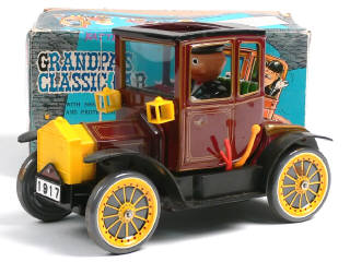 T.N. (JAPON) 1917 GRAND PA'S CLASSIC CAR en tôle lithographiée bordeaux, noir & jaune