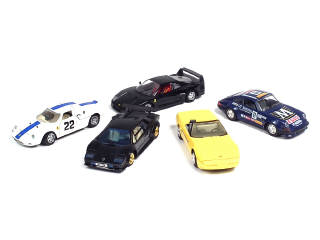 états de 'A' à 'C' - échelle 1/24ème - comprend : PORSCHE 911, FERRARI F40, 250 Le Mans, LAMBORGHINI COUNTACH & CHEVROLET CORVETTE - on y retrouve les marques : MAJORETTE & BBBURAGO - quelques manques & parties cassées