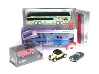 comprend : RENAULT 12/16 1912, MGA, JAGUAR XK 120 (sans boîte), NEOPLAN & MERCEDES - on y retrouve les marques : SIKU, CORGI TOYS & METALL MODELL
