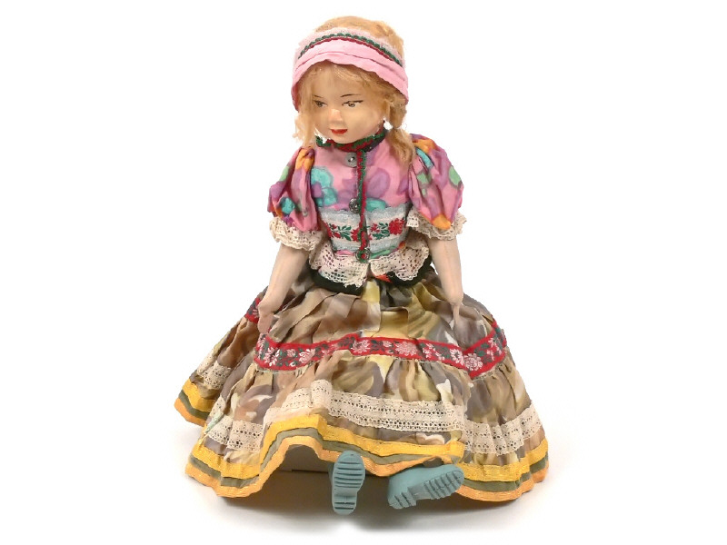 hauteur 43 cm - années 40/50 - tête en celluloïd avec nez abimé & restauré - corps articulé en tissu - bottes non conformes