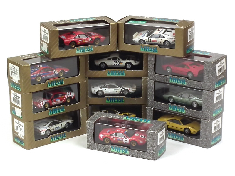 miniatures reproduisant les modèles : DINO 246 GT (édition limitée numérotée) & 308 GTB (11 exemplaires différents dont 7 éditions limitées numérotées, 2 boîtes en état 'c')