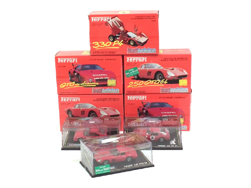 comprend : 250 GTO 64 (3 exemplaires différents), GTO EVOLUZION (3 exemplaires différents dont une boîte en état 'c'), 250 GT 61 & 330 P4 (boîte en état 'c')