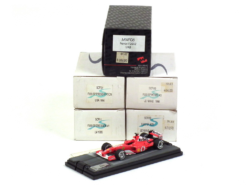 comprend : LE MANS 1994, 1995, 1998, 1999 - on y joint une FERRARI F2002 de la marque MICRO WORLD (série limitée avec certificat numéroté 053/300 exemplaires)