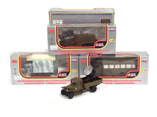 OMO (URSS) Ensemble de 4 ZIS camions militaires & une citerne-traîneau