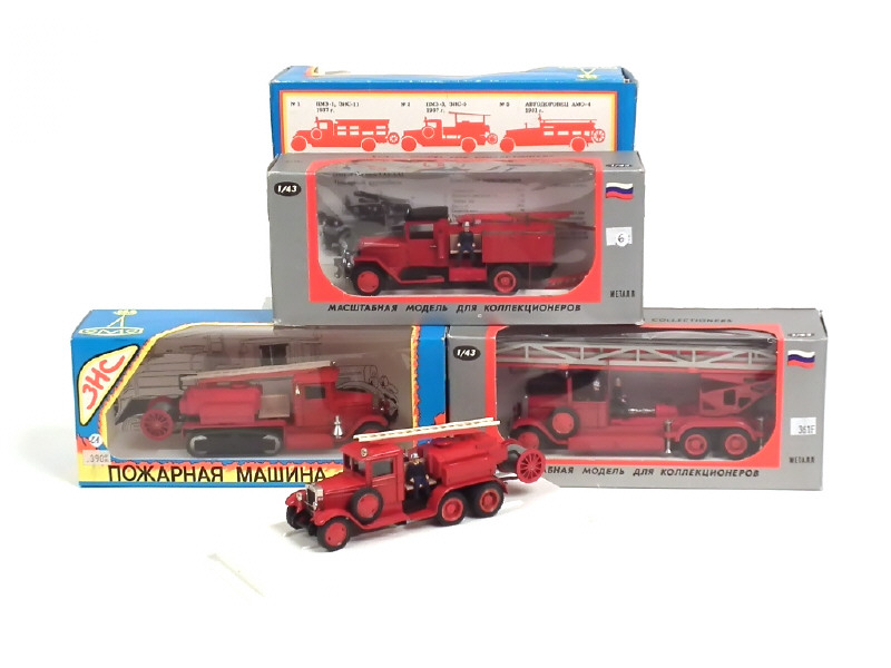 OMO (URSS) Ensemble de 4 camions de pompiers